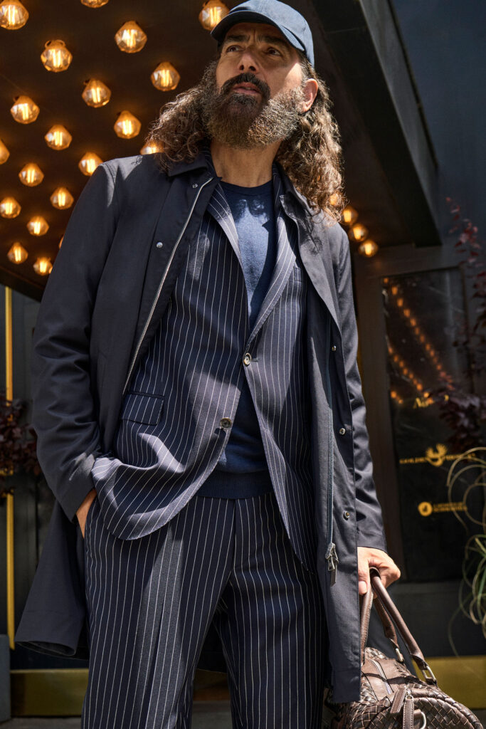 Anzüge und Blazer vereinen klassische Eleganz mit zeitgemäßen Details. Zeitlose Farbwelten werden durch saisonale Akzente wie Ozean-Türkis und Rosé ergänzt.