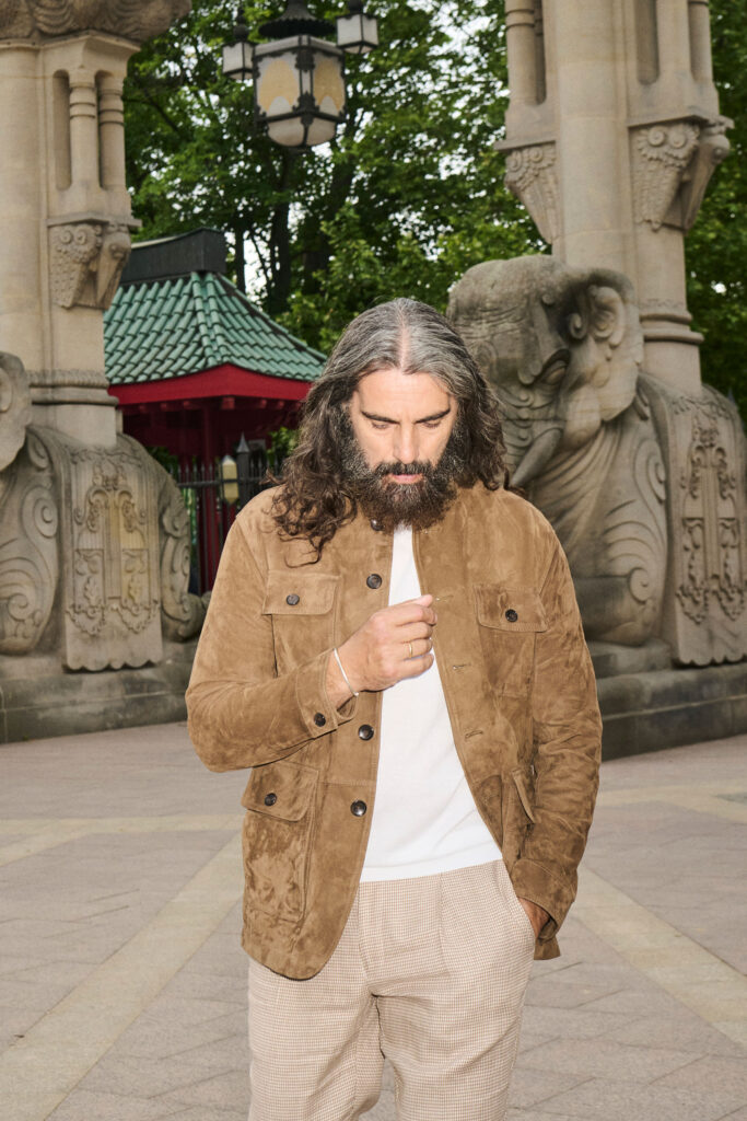 This city-ready leisure look is another innovation from DRESSLER: as a proven fabrics specialist, the menswear retailer is adding leather to its summer-season assortment for the first time. This high-quality casual jacket is made from the finest goatskin suede, which is irresistible thanks to its extreme suppleness and durability. Goat leather is lightweight, naturally water-repellent and unexpectedly robust given its fine feel. Thanks to the sporty stand-up collar and the two large patch pockets with side openings, the jacket adds casual elements to a classic shirt-jacket cut. Its versatile design means it can be paired perfectly with trim-cut, cotton-linen trousers in a subtle beige-and-white check, or with a classic white t-shirt made from a fine silk-cotton blend.