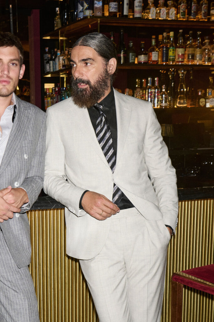 A pinstripe suit never goes out of fashion. Yet as timeless as it may seem, it is also subject to fashion trends. The modern pinstripe is no longer stiff, but, as in this version, tailored from an especially soft blend of virgin wool and linen. The double-breasted styling is appealing thanks to the light-coloured buttons, which have a decorative effect, and the trim fit, which emphasises the slim, pinstriped silhouette. Combining checks and stripes used to be taboo, but is now a cool, calculated disruption that further rejuvenates the look. The cube-pattern cotton shirt is worn open – as is the elegant silk tie. It serves as a decorative element and is draped stylishly loose, like a scarf.